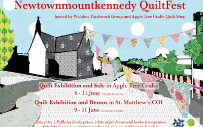 Newtownmountkennedy QuiltFest will be hosted by Wicklow Patchwork Group and Apple Tree Crafts Quilt Shop (www.appletreecrafts.ie) from 6th to 11th June 2017. An Exhibition and Demos of the work of Wicklow Patchwork Group will be held in St Matthews Church (COI), Newtownmountkennedy from 9th to 11th June 2017. There will also be an Exhibition and … Continue reading 2017 Quilt Exhibition